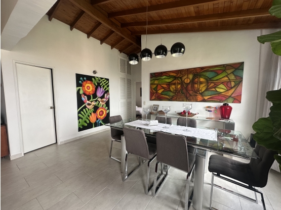 Sala comedor con techo de doble altura, que brinda amplitud y luminosidad.